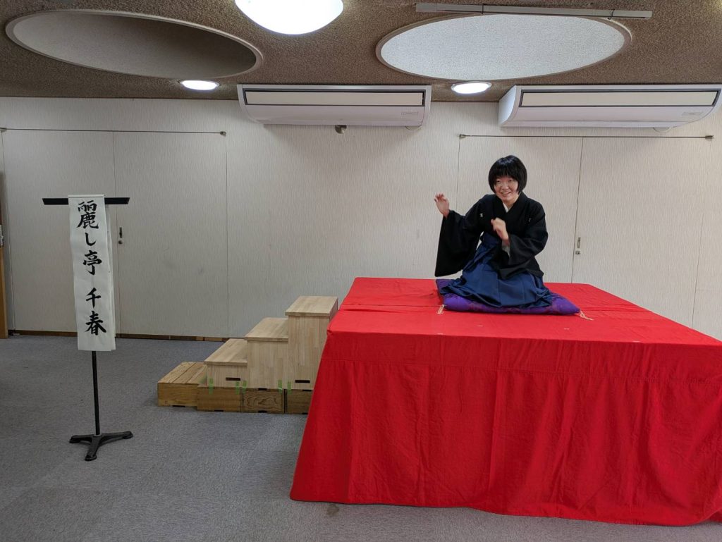 演目は「ん廻し(長崎しばり)」。麗し亭千春の父である浜ノ磯丸が古典落語の「ん廻し」を長崎風にアレンジしたもので、長崎県の名産や名所を盛り込んだ一席を披露しました。