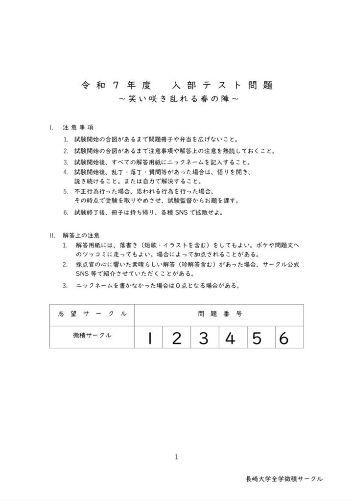 その企画の一つとして、サークルオリジナルの「入部テスト」を毎年実施しています。